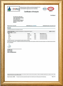 Lulus Ujian kandungan logam berat dan bebas HYDROQUINONE